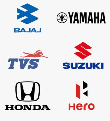 We offer bumper-to-bumper full range of genuine parts for Bajaj, TVS, Hero, Yamaha, Suzuki etc. Indian made 2 wheeler.