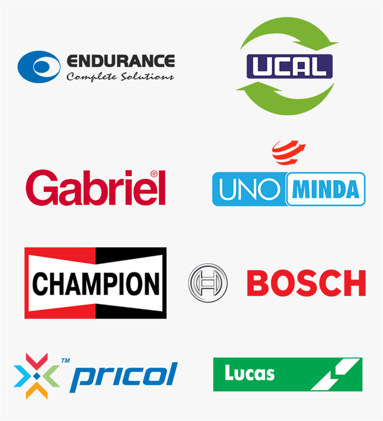 We offer most comprehensive range in vendor parts from Varroc, Endurance, Champion, Bosch, Pricol, Uno-Minda, Gabriel, Ucal etc.